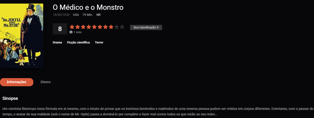Já assistiram ao clássico "O Médico e o Monstro (1920)"?